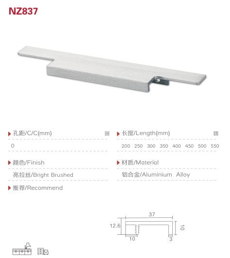Item code: NZ837(NL837) Article Name: Furniture Handle Main Material: Aluminium Alloy Color/Finish: Bright Brushed L:396mm C:296mm L:596mm C:496mm L:896mm C:796mm L:996mm C:896mm